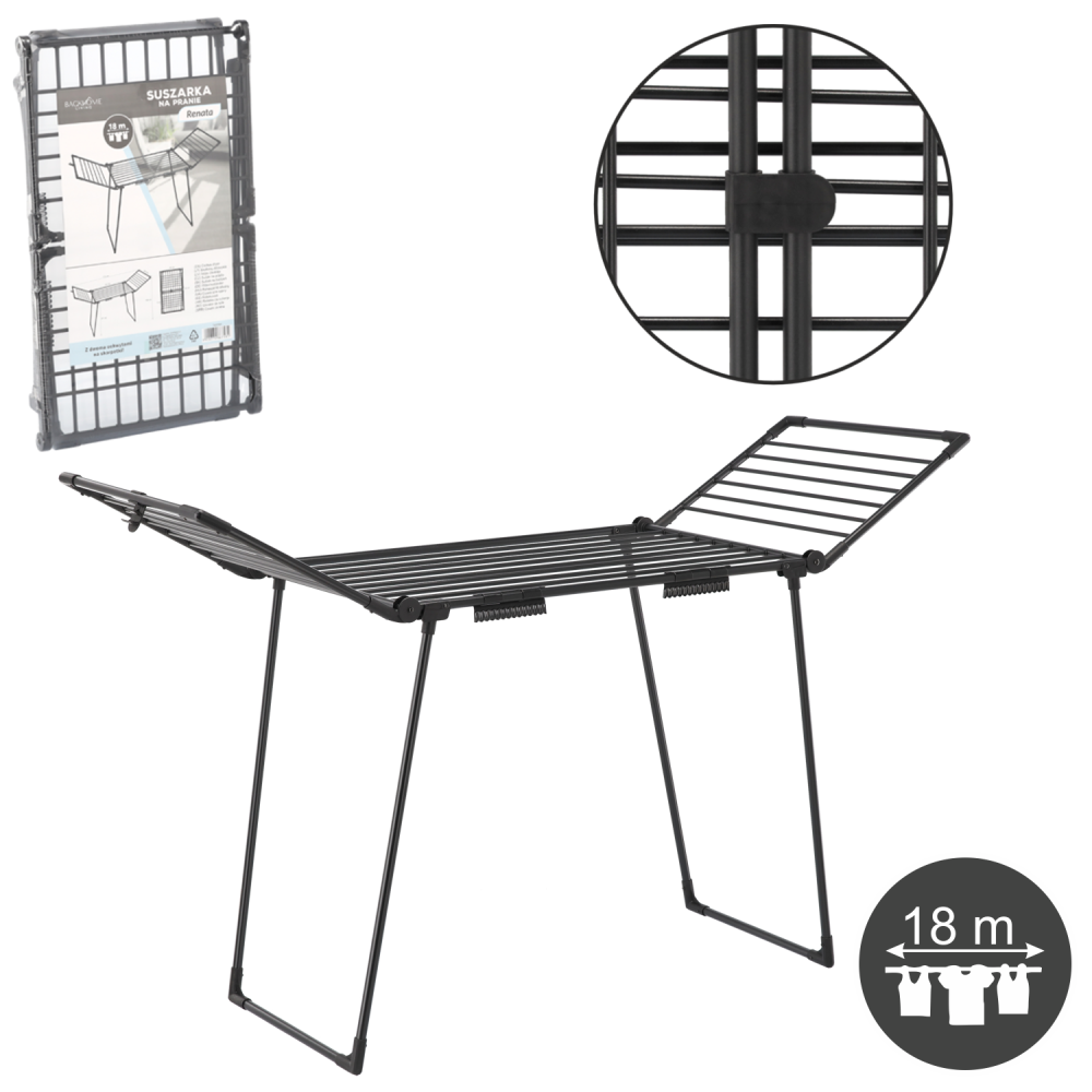 - Izjemno velika površina: Omogoča udobno obešanje več količin perila hkrati.
