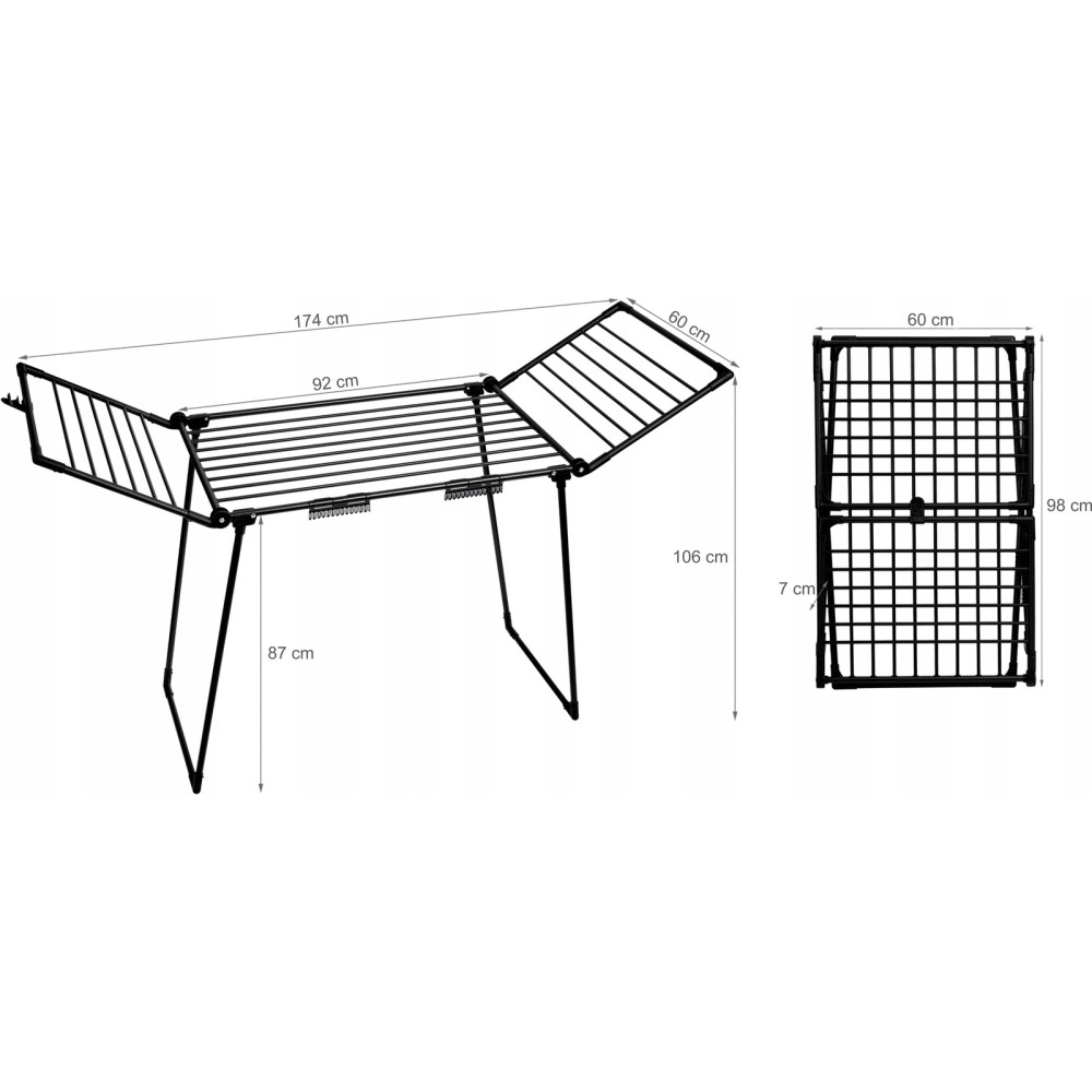 GARDEN LINE Sušilo za perilo z držalom za nogavice 174x61x106 cm RENATA - Črno