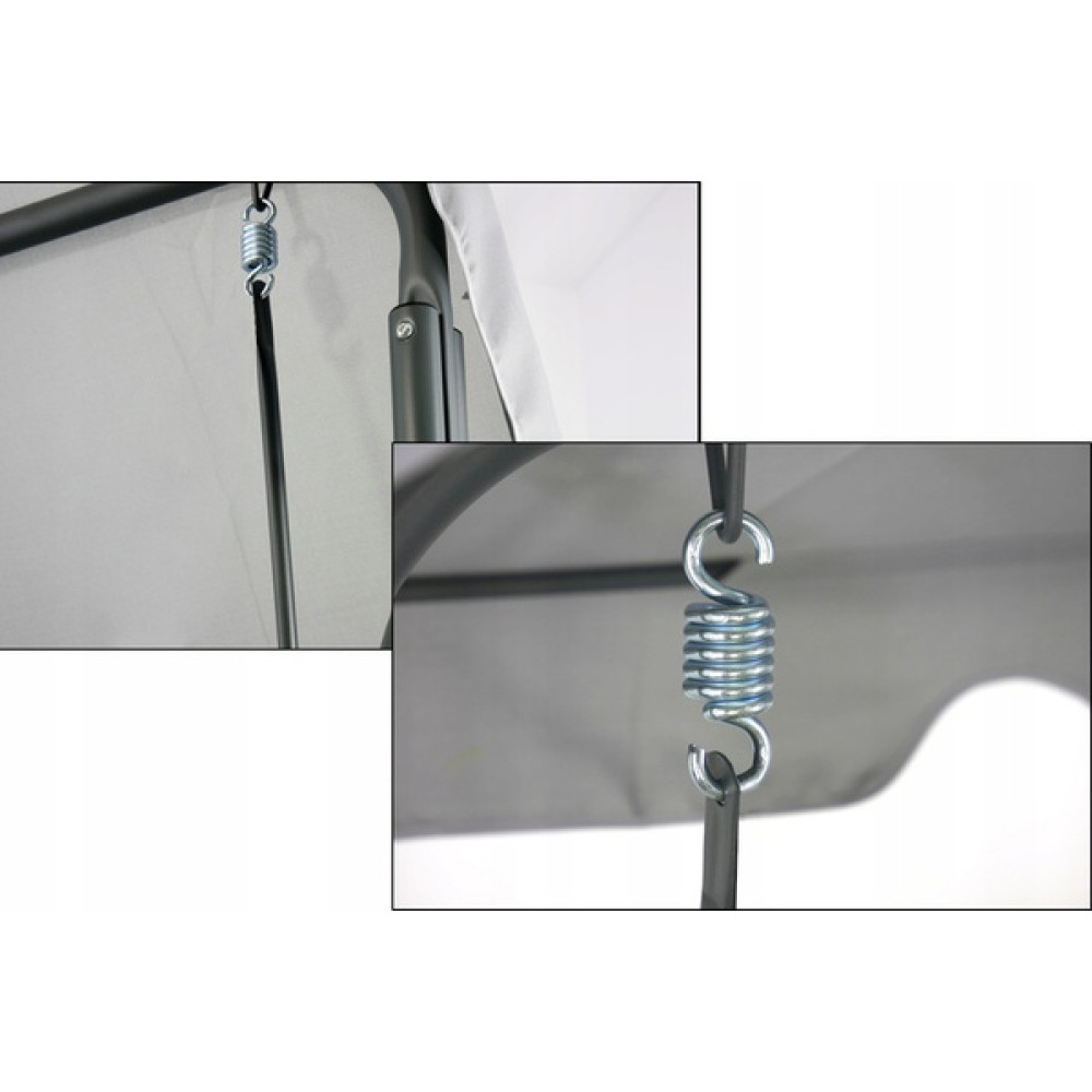 Sedež iz Textilene materiala omogoča odlično zračnost in zagotavlja udobje tudi v vročih dneh, medtem ko nastavljiva strešica omogoča enostavno prilagajanje naklona glede na položaj sonca. Z nosilnostjo do 260 kg in prostorom za 3 osebe je gugalnica popolna za sproščanje z družino ali prijatelji.