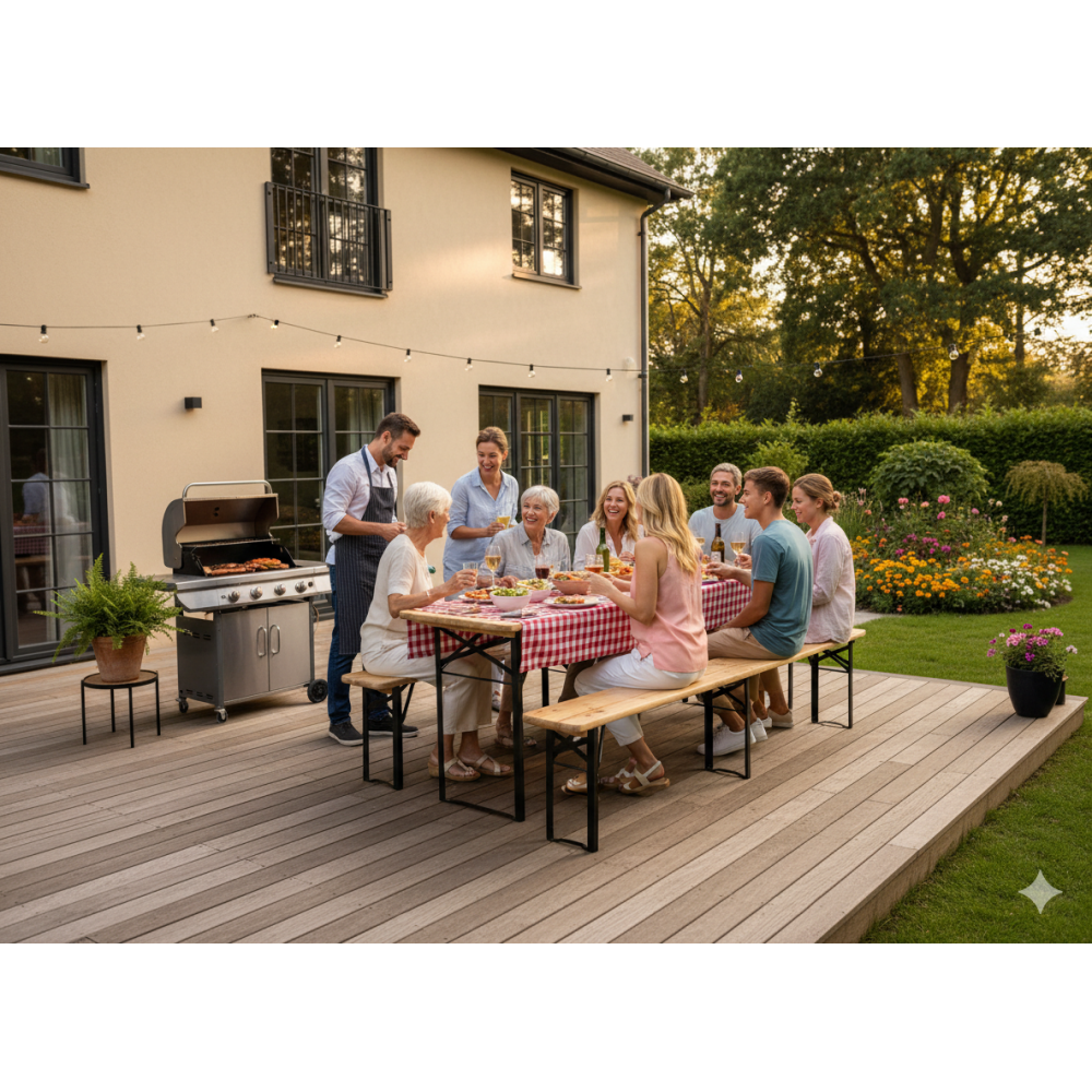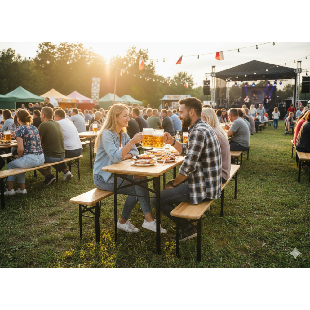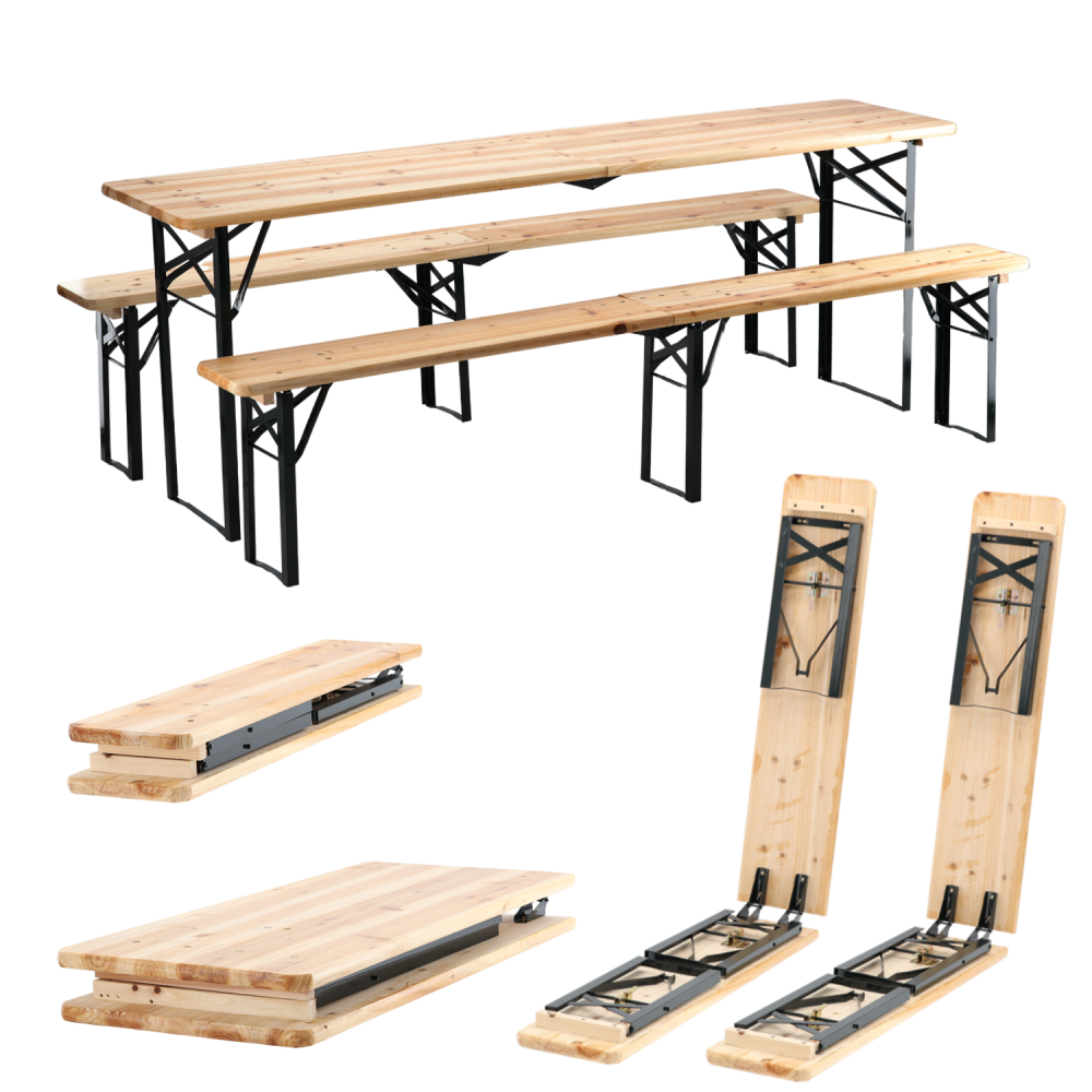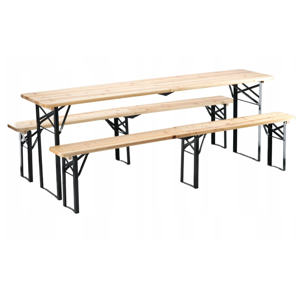 Ne glede na to, ali pripravljate rojstnodnevno praznovanje, vrtno zabavo s prijatelji ali poslovni dogodek, je ta klasični pivski set odlična izbira. Dolžina 220 cm nudi veliko prostora, zato lahko za enim kompletom udobno sedi 8–10 oseb. Površina iz naravne smrekovine ustvarja prijetno, rustikalno vzdušje, medtem ko robustna jeklena konstrukcija zagotavlja maksimalno stabilnost tudi med najbolj živahnimi dogodki.