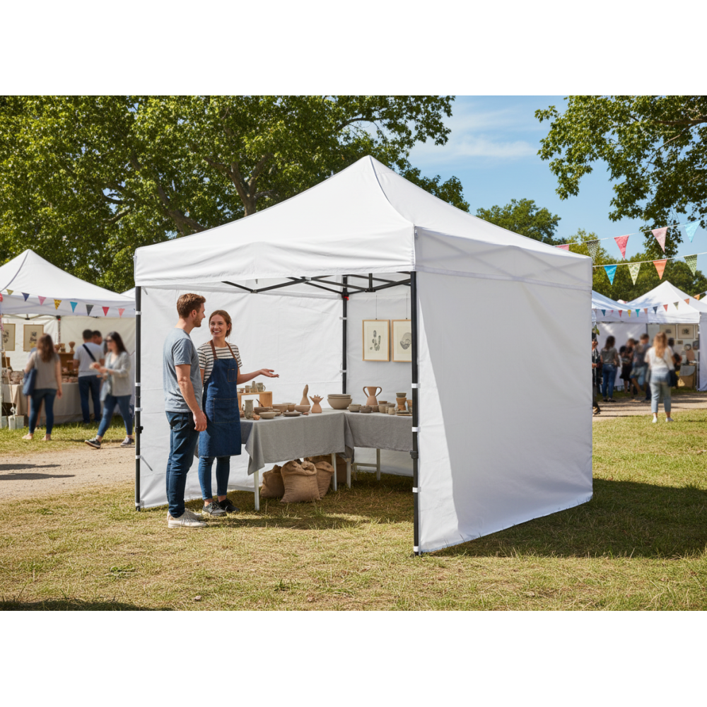 Profesionalna rešitev za vsak zunanji dogodek! Ne glede na to, ali gre za tržnico, vrtno zabavo, razstavo ali ribolov, ta paviljon velikosti 3x3 metre zagotavlja zanesljivo zaščito pred vremenskimi vplivi. Pametna harmonika konstrukcija omogoča izjemno hitro postavitev brez orodja, zato lahko več časa namenite svojim gostom ali dejavnosti.