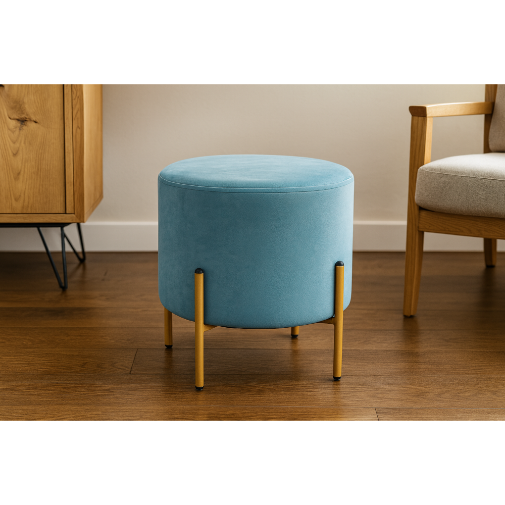 Velur tabure z zlatimi nogami – PHO3925, 35 x 40 cm – Temnomodra barva