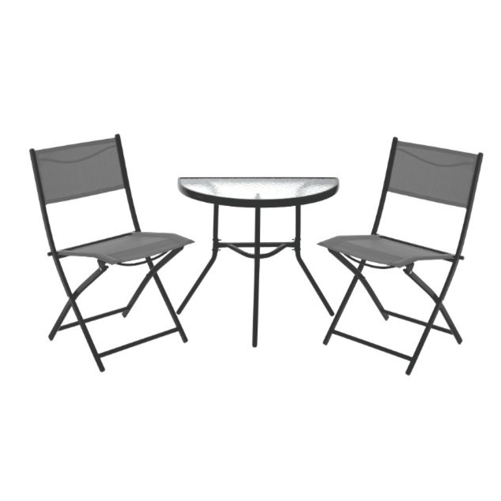 Zaradi odpornih materialov – 5 mm kaljenega stekla, stabilnega jeklenega okvirja s prašnim premazom ter udobnih tekstilenskih sedišč – komplet dolgoročno ohranja svoj estetski videz, tudi pri vsakodnevni zunanji uporabi. Univerzalna siva barva se zlahka ujema z vsakim slogom opreme in drugim vrtnim pohištvom, zato lahko ustvarite enoten in funkcionalen prostor za počitek.